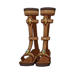 Symphonic Sandals is a 3-Star (Blue) rarity item available in Genshin Impact's Miliastra Wonderland UGC gamemode, designed for the footwear slot. Symphonic Sandals can only be equipped by the female Manekina. This customisation option features primarily a brown color scheme.