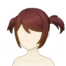 Short, dark red twin tails brimming with childlike whimsy. They bounce cheerfully with every smile.