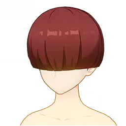 A red short hairstyle, thick and full with a smooth, rounded shape that gives the wearer a friendly and approachable aura.