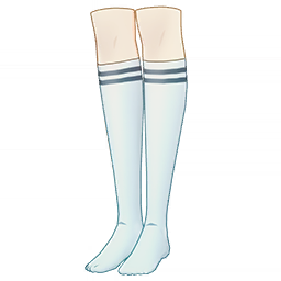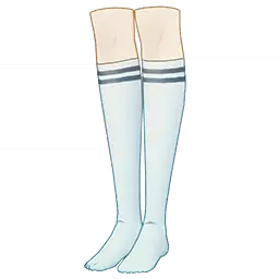 Tranquil Waters Sailor Socks is a 3-Star (Blue) rarity item available in Genshin Impact's Miliastra Wonderland UGC gamemode, designed for the leg accessory slot. Tranquil Waters Sailor Socks can only be equipped by the female Manekina. This customisation option features primarily a white color scheme.