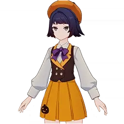 Parade is a 3-Star (Blue) rarity item available in Genshin Impact's Miliastra Wonderland UGC gamemode. Parade can only be equipped by the female Manekina. This customisation option features primarily a orange color scheme.