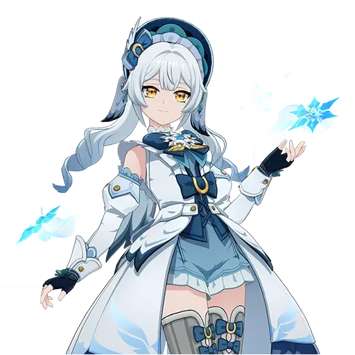 Frosty Plume is a 5-Star (Orange) rarity item available in Genshin Impact's Miliastra Wonderland UGC gamemode. Frosty Plume can only be equipped by the female Manekina. This variant mainly features colors such as Blue and Gray.