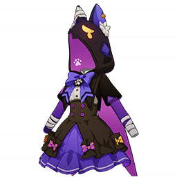 Phantom Night Dress is a 4-Star (Purple) rarity item available in Genshin Impact's Miliastra Wonderland UGC gamemode, designed for the upper body slot. Phantom Night Dress can only be equipped by the female Manekina. This variant mainly features colors such as Purple and Black.
