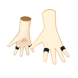 Offbeat District Finger Sleeves is a 4-Star (Purple) rarity item available in Genshin Impact's Miliastra Wonderland UGC gamemode, designed for the bracelet slot. Offbeat District Finger Sleeves can only be equipped by the male Manekin. This customisation option features primarily a black color scheme.