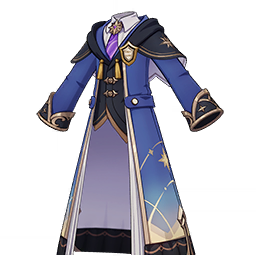 Dawn's Visionary Formals is a 4-Star (Purple) rarity item available in Genshin Impact's Miliastra Wonderland UGC gamemode, designed for the upper body slot. Dawn's Visionary Formals can only be equipped by the male Manekin. This customisation option features primarily a blue color scheme.