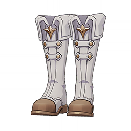 Dawn's Visionary Mid-Calf Boots is a 4-Star (Purple) rarity item available in Genshin Impact's Miliastra Wonderland UGC gamemode, designed for the footwear slot. Dawn's Visionary Mid-Calf Boots can only be equipped by the male Manekin. This customisation option features primarily a white color scheme.