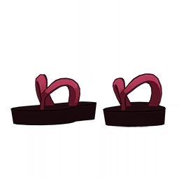 A pair of lightweight scarlet wooden clogs. The bottom features a special design that turns the wearer into an elusive phantom capable of silent and swift movement in any environment.