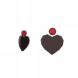 A set of heart-shaped black and red earrings. The red symbolizes joy, while the black conveys a chocolate-like sweetness. Together, they form a delightful sweet feast straight from fairyland.