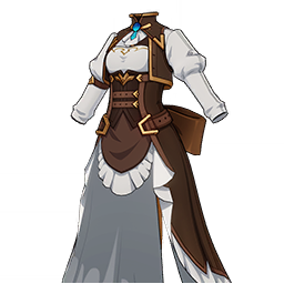 Steamwave Chronicles Top is a 4-Star (Purple) rarity item available in Genshin Impact's Miliastra Wonderland UGC gamemode, designed for the upper body slot. Steamwave Chronicles Top can only be equipped by the female Manekina. This customisation option features primarily a brown color scheme.