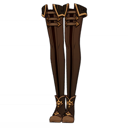 Steamwave Chronicles Long Boots is a 4-Star (Purple) rarity item available in Genshin Impact's Miliastra Wonderland UGC gamemode, designed for the footwear slot. Steamwave Chronicles Long Boots can only be equipped by the female Manekina. This customisation option features primarily a brown color scheme.