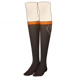 Orange Passion Socks is a 4-Star (Purple) rarity item available in Genshin Impact's Miliastra Wonderland UGC gamemode, designed for the leg accessory slot. Orange Passion Socks can only be equipped by the female Manekina. This customisation option features primarily a black color scheme.