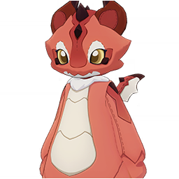 A red mascot suit modeled after a flying Saurian. Crafted from lightweight fabric with a soft inner lining, this is a fluffy and stretchy suit that has the look of an adorably puffed-up, yet harmless, little creature.