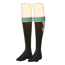 Timeless Echo Long Socks is a 4-Star (Purple) rarity item available in Genshin Impact's Miliastra Wonderland UGC gamemode, designed for the leg accessory slot. Timeless Echo Long Socks can only be equipped by the male Manekin. This customisation option features primarily a black color scheme.