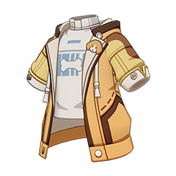 Cheerful Playmate Top is a 4-Star (Purple) rarity item available in Genshin Impact's Miliastra Wonderland UGC gamemode, designed for the upper body slot. Cheerful Playmate Top can only be equipped by the male Manekin. This variant mainly features colors such as Yellow and Orange.