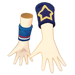 Blazing Ambition Wristguards is a 4-Star (Purple) rarity item available in Genshin Impact's Miliastra Wonderland UGC gamemode, designed for the bracelet slot. Blazing Ambition Wristguards can only be equipped by the male Manekin. This customisation option features primarily a blue color scheme.