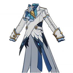 Frosty Plume Formals is a 5-Star (Orange) rarity item available in Genshin Impact's Miliastra Wonderland UGC gamemode, designed for the upper body slot. Frosty Plume Formals can only be equipped by the male Manekin. This variant mainly features colors such as Blue and White.