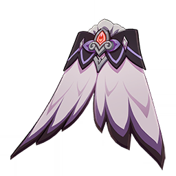 Frosty Plume Wings: Shadowed Verse is a 5-Star (Orange) rarity item available in Genshin Impact's Miliastra Wonderland UGC gamemode, designed for the back accessory slot. Frosty Plume Wings: Shadowed Verse can only be equipped by the female Manekina. This customisation option features primarily a purple color scheme.