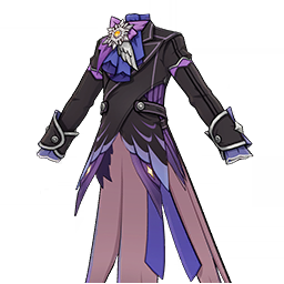 Frosty Plume Formals: Shadowed Verse is a 5-Star (Orange) rarity item available in Genshin Impact's Miliastra Wonderland UGC gamemode, designed for the upper body slot. Frosty Plume Formals: Shadowed Verse can only be equipped by the male Manekin. This variant mainly features colors such as Purple and Black.