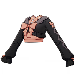 Nightveil Peach Top is a 3-Star (Blue) rarity item available in Genshin Impact's Miliastra Wonderland UGC gamemode, designed for the upper body slot. Nightveil Peach Top can only be equipped by the female Manekina. This variant mainly features colors such as Red and Black.