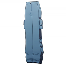 Nightveil Peach Pants is a 3-Star (Blue) rarity item available in Genshin Impact's Miliastra Wonderland UGC gamemode, designed for the lower body slot. Nightveil Peach Pants can only be equipped by the male Manekin. This customisation option features primarily a blue color scheme.