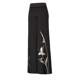 Black safety bottoms adorned with exquisite white motifs that give off an aura of understated elegance. Paired with the gentle-looking top, it reveals a character's bold and determined aura.