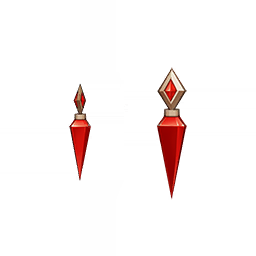 Scaleblade Chronicles Earrings is a 5-Star (Orange) rarity item available in Genshin Impact's Miliastra Wonderland UGC gamemode, designed for the earrings slot. Scaleblade Chronicles Earrings can only be equipped by the female Manekina. This customisation option features primarily a red color scheme.