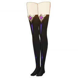 Scaleblade Chronicles Stockings: Dark Flame is a 5-Star (Orange) rarity item available in Genshin Impact's Miliastra Wonderland UGC gamemode, designed for the leg accessory slot. Scaleblade Chronicles Stockings: Dark Flame can only be equipped by the female Manekina. This variant mainly features colors such as Purple and Black.