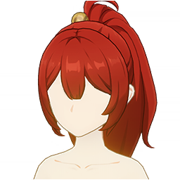 A vivid red long hairstyle, bright as glowing sunset clouds, tied into a high, flowing ponytail. It captures a lively spirit that always feels in motion.