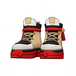 Scarlet Cloudfall Shoes is a 4-Star (Purple) rarity item available in Genshin Impact's Miliastra Wonderland UGC gamemode, designed for the footwear slot. Scarlet Cloudfall Shoes can only be equipped by the male Manekin. This variant mainly features colors such as Red and Yellow.