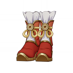 Morning's Dawn and Dew Shoes is a 5-Star (Orange) rarity item available in Genshin Impact's Miliastra Wonderland UGC gamemode, designed for the footwear slot. Morning's Dawn and Dew Shoes can only be equipped by the female Manekina. This customisation option features primarily a red color scheme.