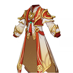 Morning's Dawn and Dew Robe is a 5-Star (Orange) rarity item available in Genshin Impact's Miliastra Wonderland UGC gamemode, designed for the upper body slot. Morning's Dawn and Dew Robe can only be equipped by the male Manekin. This variant mainly features colors such as Red, Yellow, and White.