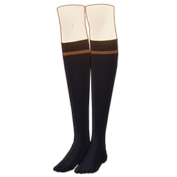Autumn Academia Stockings is a 3-Star (Blue) rarity item available in Genshin Impact's Miliastra Wonderland UGC gamemode, designed for the leg accessory slot. Autumn Academia Stockings can only be equipped by the female Manekina. This customisation option features primarily a black color scheme.