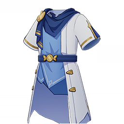 Triumphal Golden Apple Short Robe is a 3-Star (Blue) rarity item available in Genshin Impact's Miliastra Wonderland UGC gamemode, designed for the upper body slot. Triumphal Golden Apple Short Robe can only be equipped by the male Manekin. This customisation option features primarily a blue color scheme.
