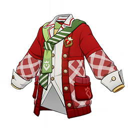 Tart Berry Muse Top is a 4-Star (Purple) rarity item available in Genshin Impact's Miliastra Wonderland UGC gamemode, designed for the upper body slot. Tart Berry Muse Top can only be equipped by the male Manekin. This variant mainly features colors such as Red and Green.