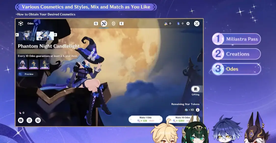 - Crafting outfits from blueprints obtained from Ode banners. This is a gacha system featuring both permanent and limited-time Ode banners