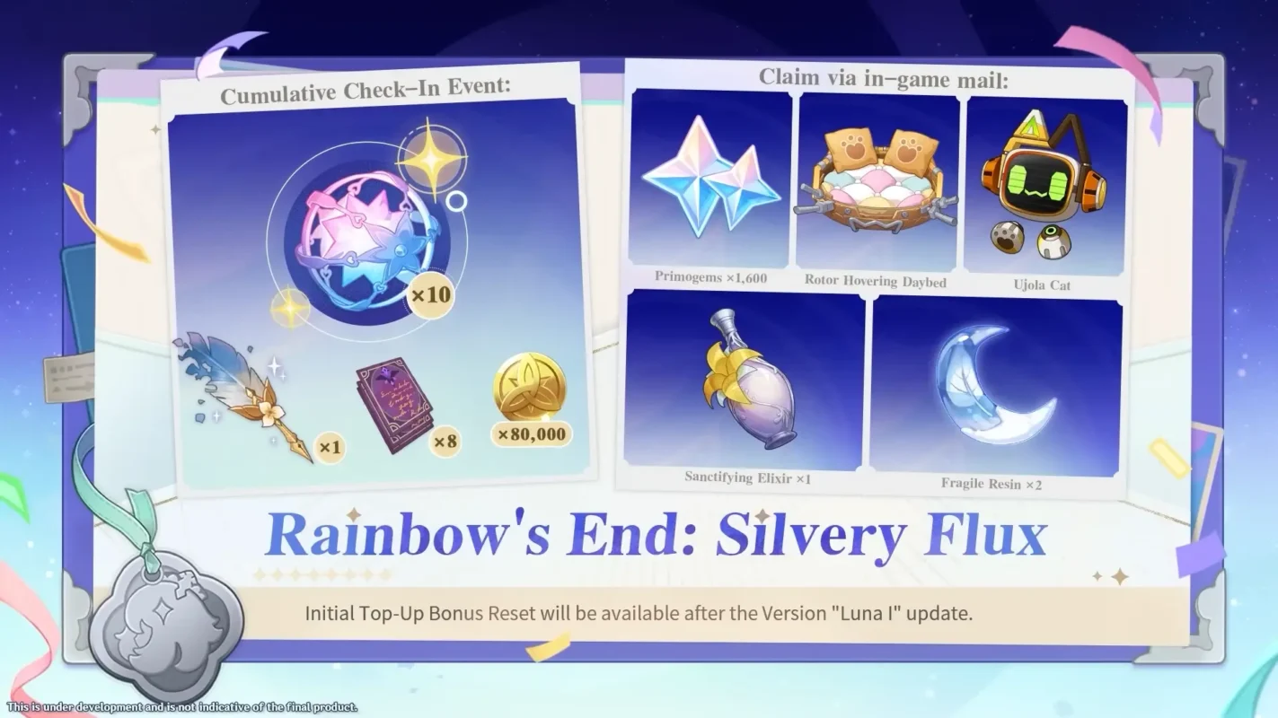 On September 28th, the official anniversary date, players will also receive a special in-game mail packed with goodies: 1,600 Primogems, 2 Fragile Resin, 1 Sanctifying Elixir, and two brand-new gadgets. The first, the Ujola Cat, works like a Seelie companion but in robot form. The second is the Rotor Hovering Daybed, a co-op-friendly gadget that lets players sit together anywhere in the world, perfect for cozy hangouts or snapping fun photos.