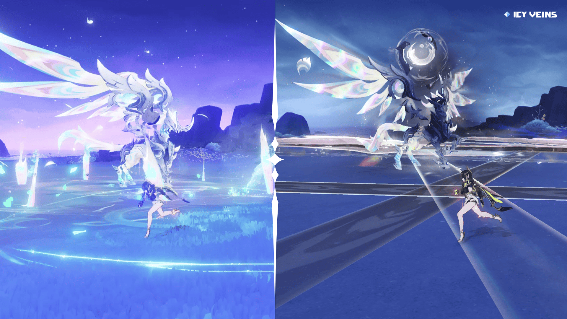Travelers can use the Premium Lunar Bloom Nefer Team to defeat Frostnight Herra with ease.