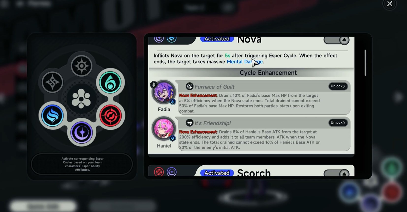 While this system is already quite complex at this point, there is one more layer to it. Almost every character in the game has a passive effect (Support Skill) linked to them, that further boosts the effectiveness of an Esper Cycle skill or effect. These can range from duration to damage increases, or even increasing the total cap of any given effect.