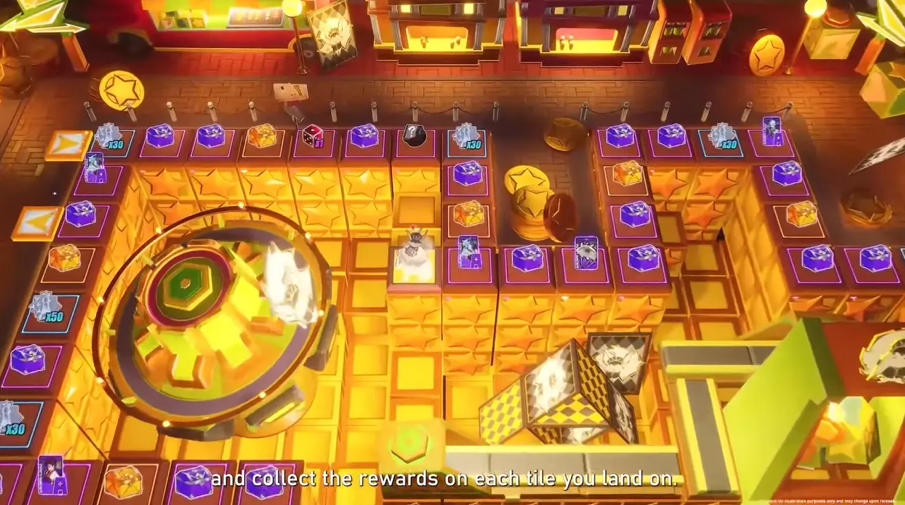 Your goal is to roll the corresponding dice and move across the board to collect the rewards on each tile you land on, until you land on a character.