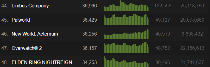 The combination of new end-game content and allowing players to return and play this expansion free-of-cost has pushed New World: Aeternum to the Top 50 Most Played on Steam Charts!
