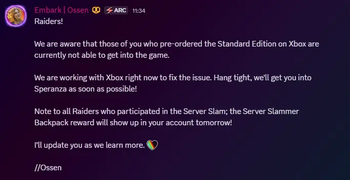 The launch did run into some trouble. Xbox players who purchased the Standard Edition can currently not get into the game. Embark did release a message on their Discord server, stating that they are working closely with Xbox to solve the problem, and let everyone in as soon as possible!