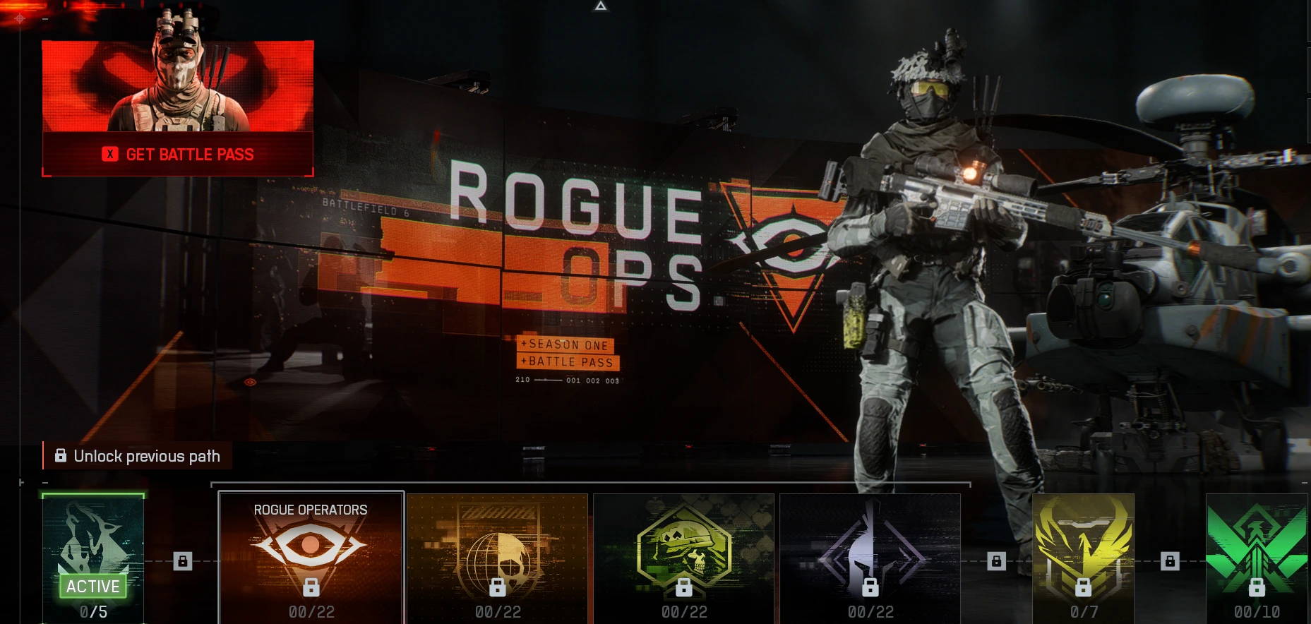 Players will start the Battle Pass in a separate Recruit tier; afterward, they can choose from one of four sections to start with—Rogue Operators, Deniable Ops, Soldiers of Fortune, & Pacific Ghosts. Once you pick a path, you are locked in until you finish it. Once you are done with one path, you can select another and start the process over again. After you finish all 4, you can progress to the Ultimate path, and if you finish that, you can earn the rewards in the final Prestige path.