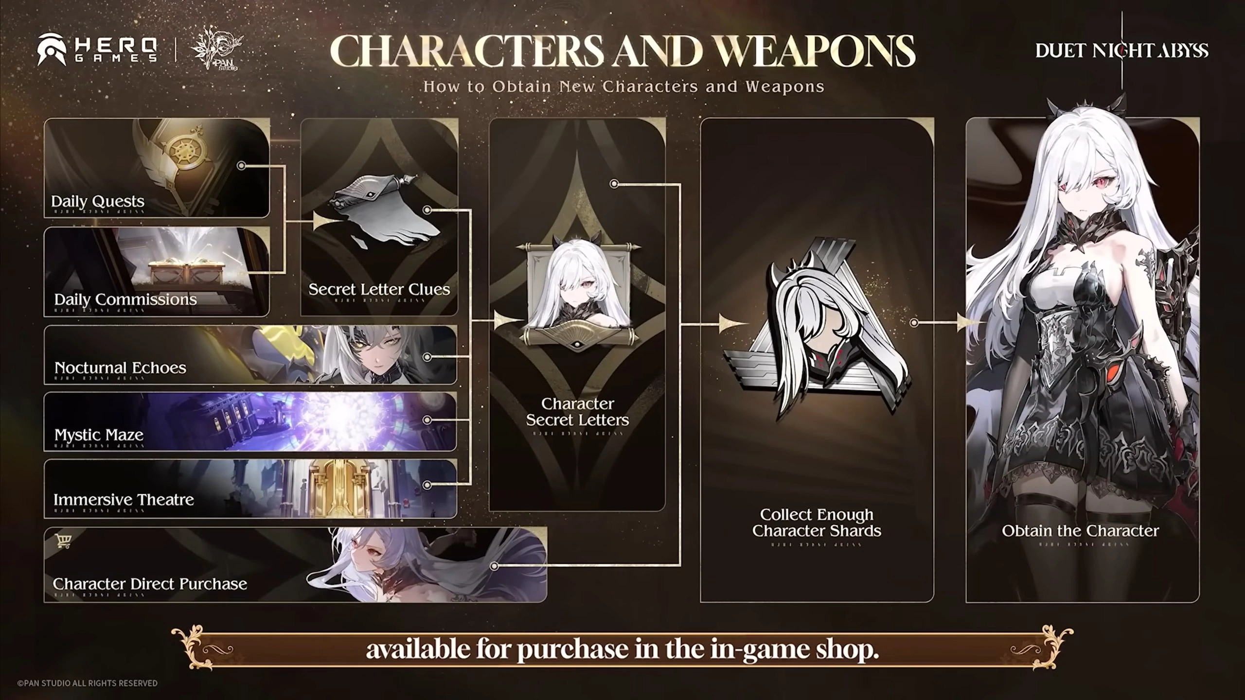 As Pan Studio made the decision to remove gacha from the game, characters and weapons are instead grindable through currency and dungeon content, or purchased outright.
