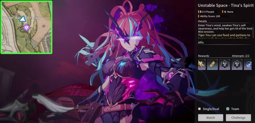 This one is a fast-paced daily grind with big rewards. You can jump in through the Unstable Space Portal at the Unit X Research Facility, either solo (with AI backup) or by queuing with other players. Each day, the dungeon rotates between all available bosses on the server. What makes it really fast is the fact that you skip straight to the boss fight.