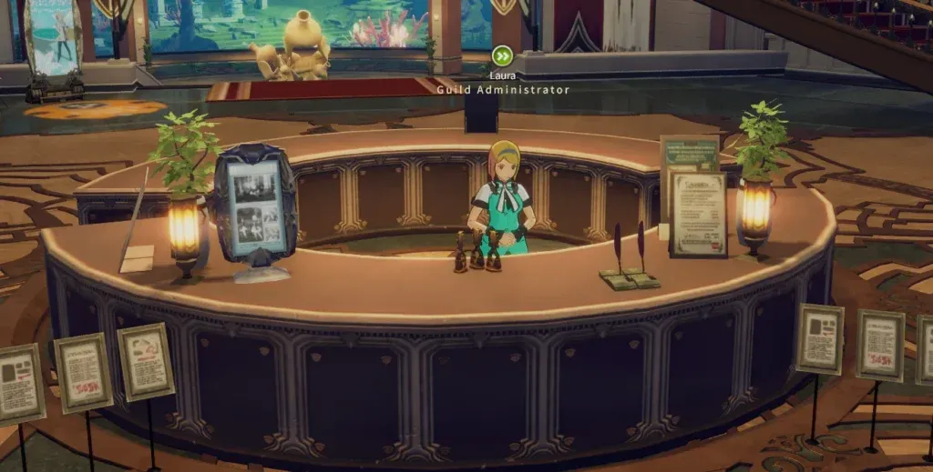 You can head over to the Guild Center and have a quick chat with Laura at the front desk. She’s your go-to for earning guild coins, contribution points, and helping stock up on guild funds.