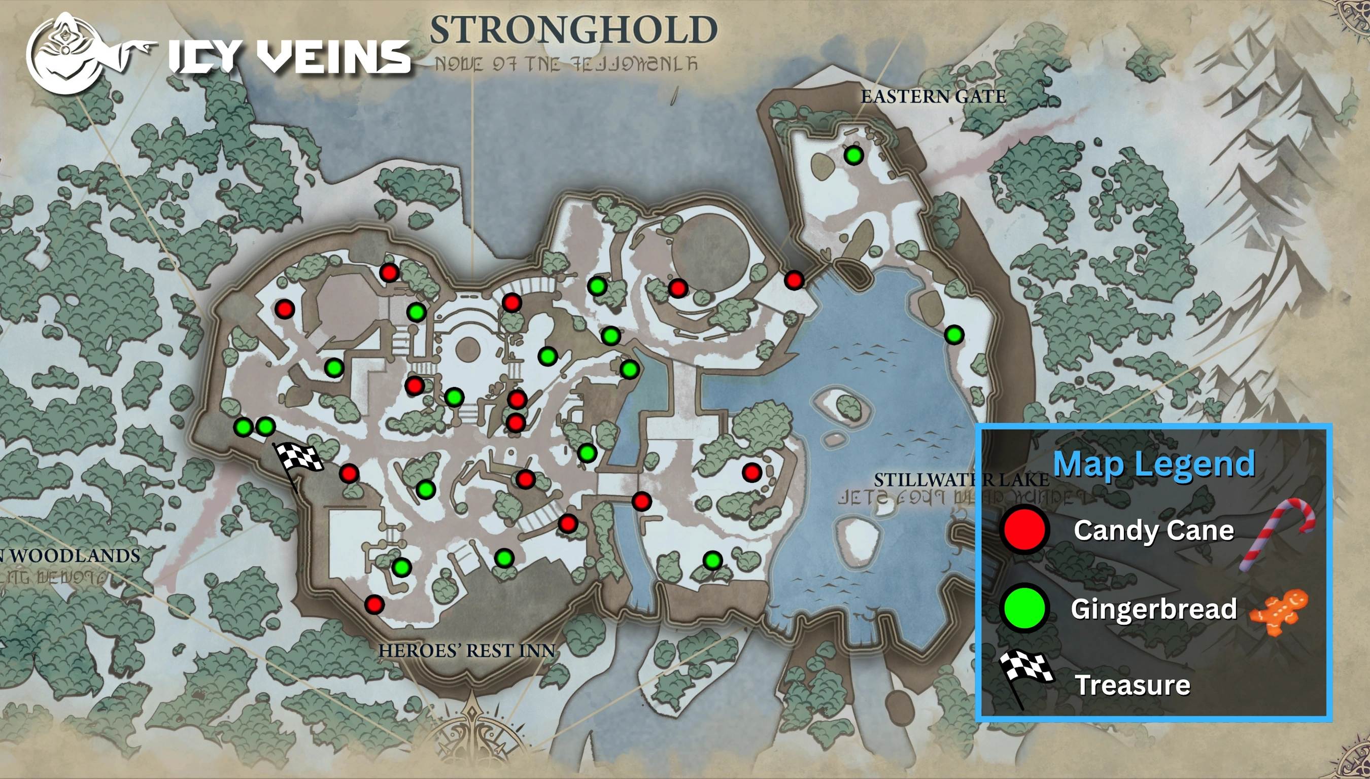 Around the Stronghold, candies can be found that give a stacking speed buff. You will need to collect 30 candies without losing the buff, then complete the jump puzzle by the tower on the south-west side of the Stronghold.