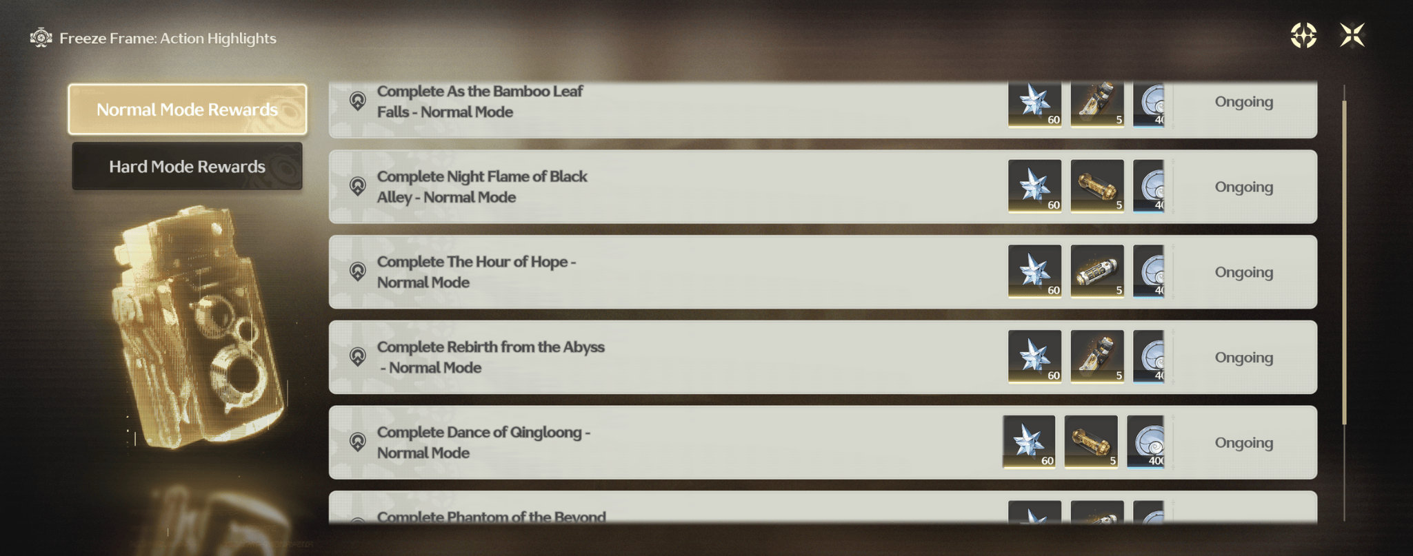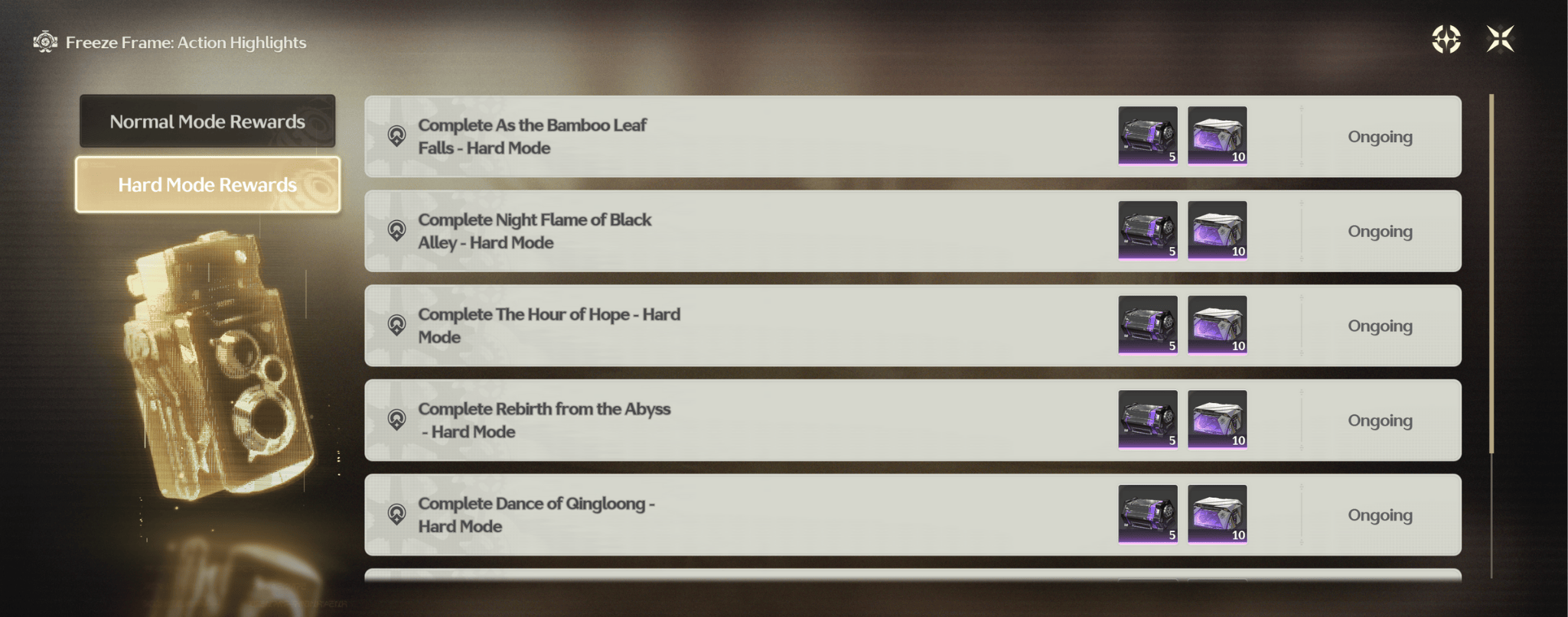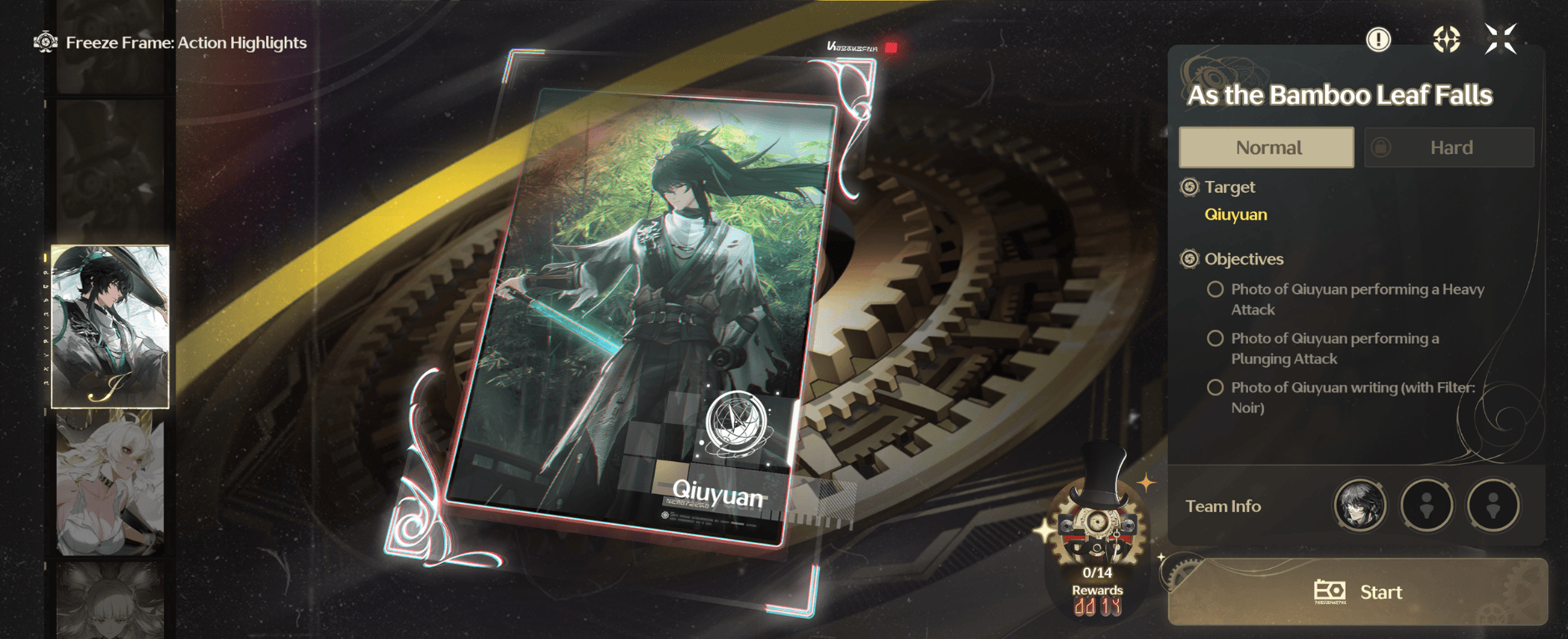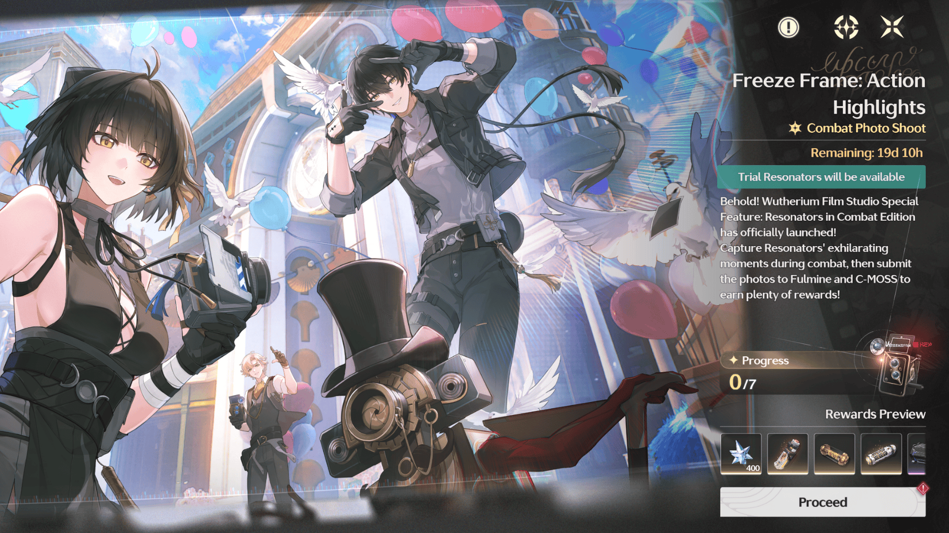 - Each Freeze Frame challenge will focus on a specific Resonator. Capture highlights of these Resonators in combat by meeting specific objectives. Complete the challenges to receive rewards!