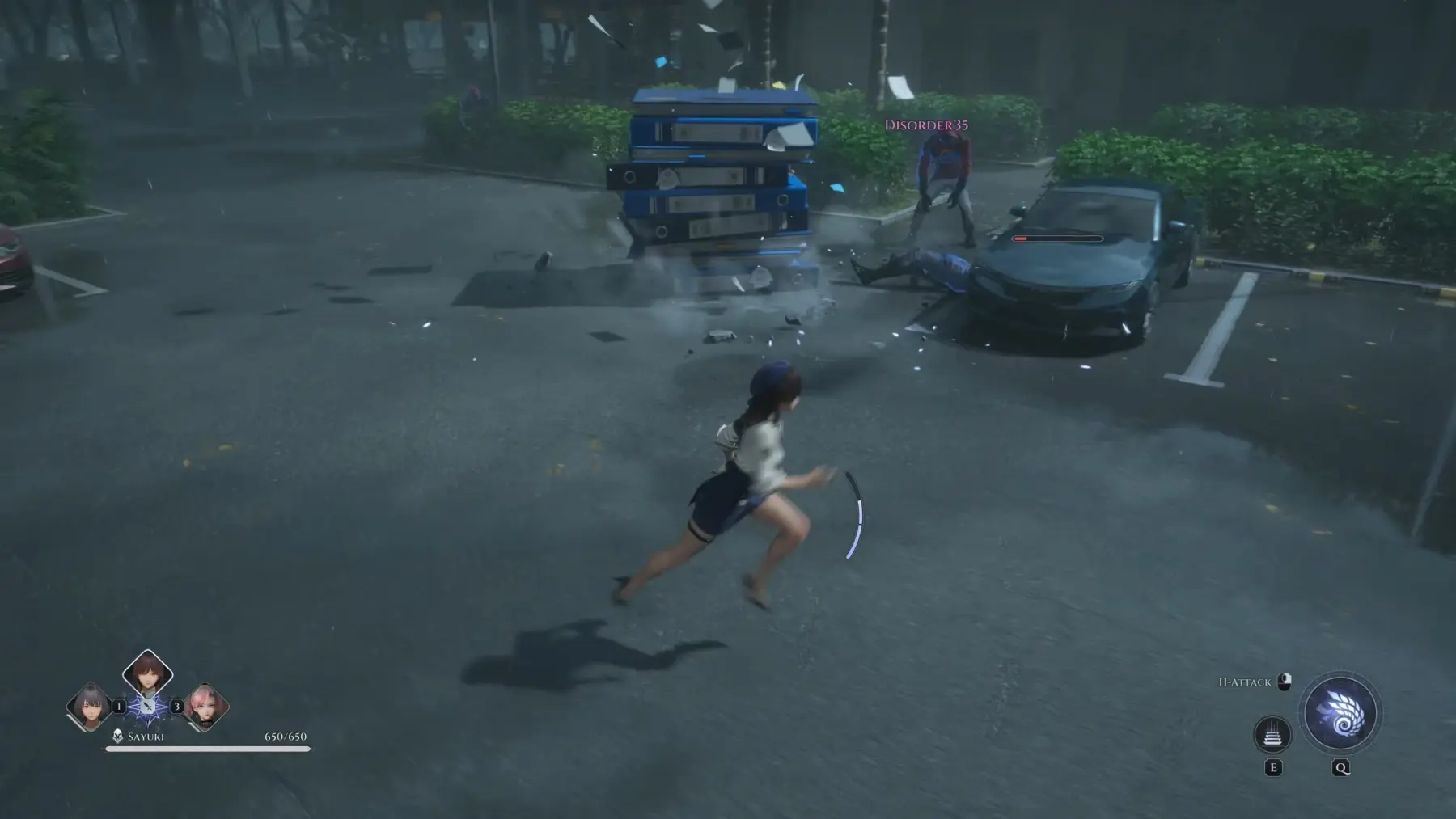 The gameplay shows a new player character who fights with an umbrella weapon, mixing fast melee with a few supernatural effects when fighting against some sort of Shadow Monsters.