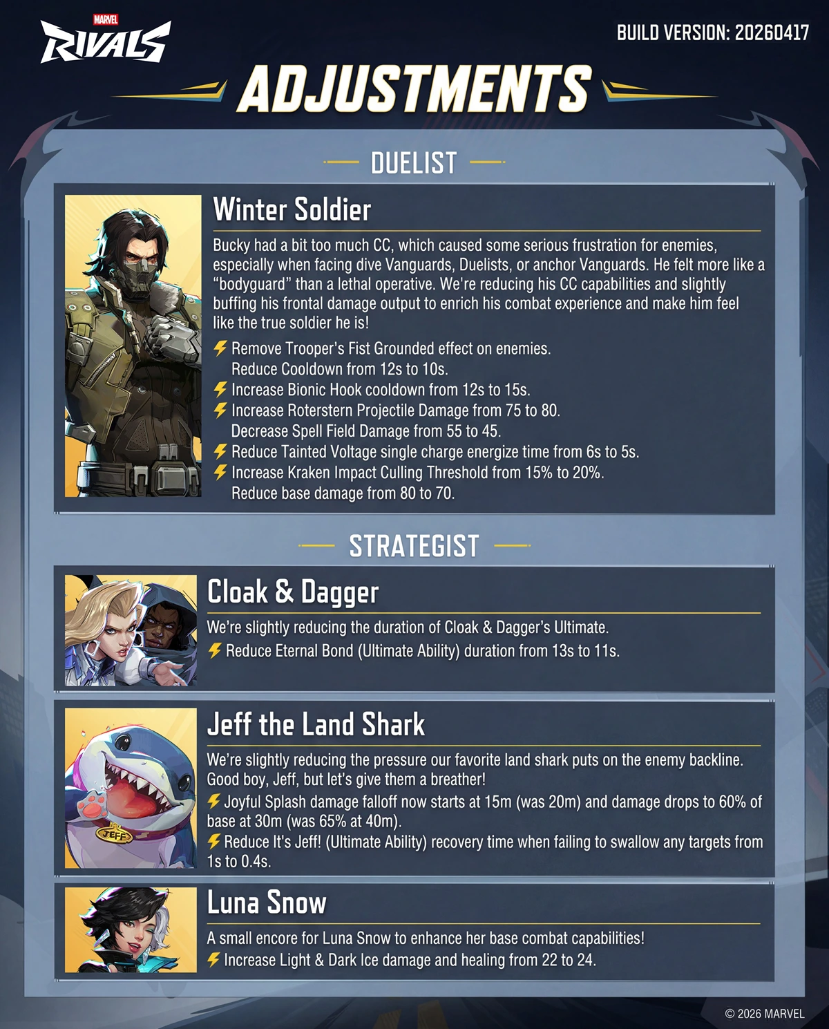 Winter Soldier is also getting a long list of changes after being a powerhouse for so long, but these are more targeting crowd control abilities, rather than a full damage nerf.