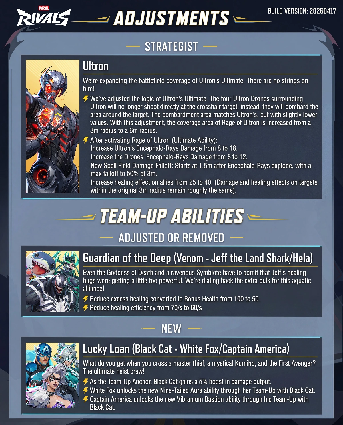 As for Team-Ups, Guardian of the Deep is seeing some pretty hefty nerfs to its healing, while Season 7.5 is bringing a new Team-Up between Black Cat, White Fox, and, surprisingly, Captain America.